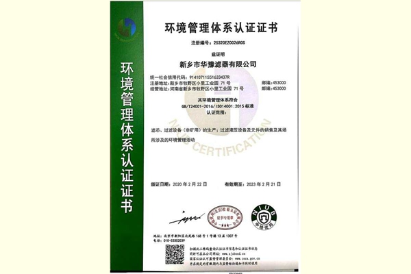 環(huán)境管理體系證書