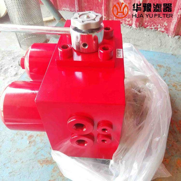 SGF系列雙筒過濾器由換向閥、壓力平衡閥、旁通閥、污染堵塞發(fā)訊器及兩只濾筒等組成,可以實現(xiàn)在系統(tǒng)不停機的情況下更換濾芯。該過濾器可安裝在控制元件或執(zhí)行元件前的高壓管路上,用以保護控制元件及執(zhí)行機構(gòu)。特別適用自動控制系統(tǒng)中高精度伺服元件及柱塞元件的保護,可有效控制污染,延長元件使用壽命。工作時一只濾筒通油,另一只濾筒不通油備用。當(dāng)工作濾筒的濾芯堵塞至壓差發(fā)訊器壓力指示值為0.5MPa時,發(fā)訊器發(fā)訊,此時應(yīng)及時打開壓力平衡閥、轉(zhuǎn)動換向閥啟用備用濾筒(換向閥轉(zhuǎn)動到位后關(guān)閉壓力平衡閥)。再只需旋開螺塞放完被堵塞濾筒內(nèi)的油液,再旋下筒體,就可更換已堵塞的濾芯。如因故未能及時切換換向閥啟用備用濾筒,導(dǎo)致壓差持續(xù)上升至旁通閥開啟壓力0.6MPa時,旁通閥會自動開啟,以避免由于壓力繼續(xù)上升,濾芯破裂造成再污染。但此時油液未經(jīng)過濾對系統(tǒng)安全造成***危害,應(yīng)盡可能避免旁通閥被開啟。
